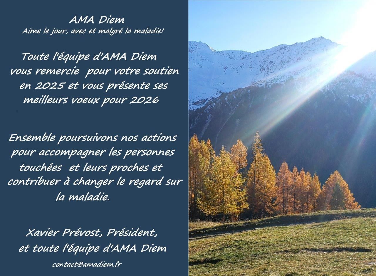 Toute l’équipe d’AMA Diem vous remercie pour votre soutien en 2025 et vous présente ses meilleurs voeux pour 2026.